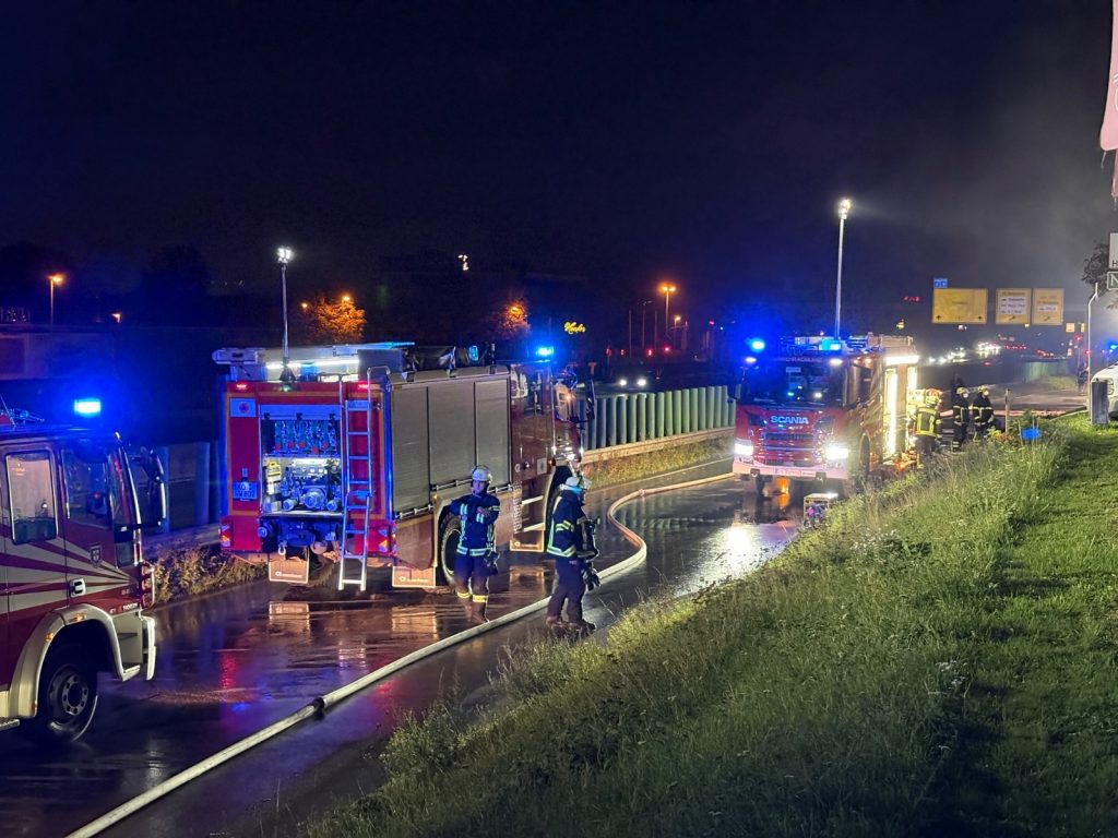 Unsere Einheit wurde zu einem bestätigten Gebäudevollbrand mit der Wasserförderungskomponente nachalarmiert. An der Einsatzstelle brannte ein Teil eines Hallenkomplexes und die Brandbekämpfung war bereits durch die Berufsfeuerwehr eingeleitet. Wir bekamen vom Einsatzleiter den Einsatzauftrag eine weitere Wasserversorgung für die Einsatzstelle herzustellen. Im weiteren Verlauf des Einsatzes stellten wir in unserem Einsatzabschnitt einen Sicherheitstrupp und unterstützen beim Ausleuchten der Einsatzstelle.