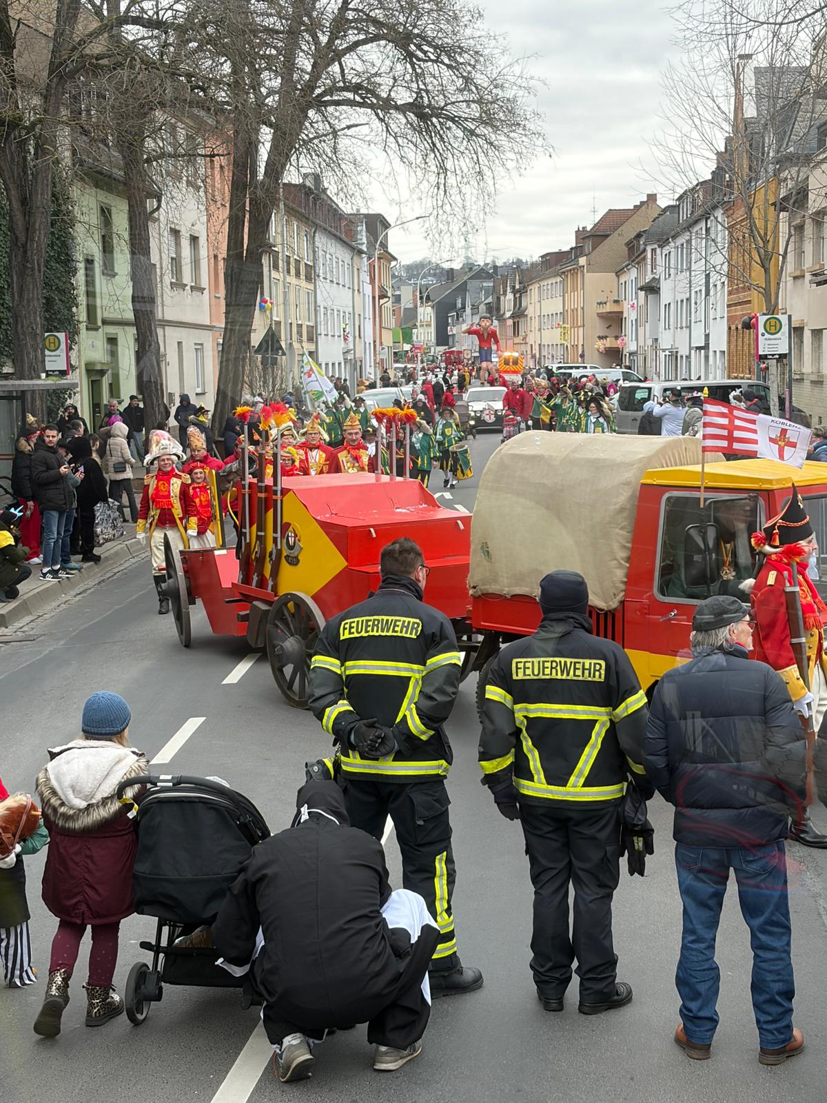 Auch am 16.02.2026 unterstützten wir gemeinsam mit Kameraden aus der Freiwilligen Feuerwehr Koblenz die Arbeitsgemeinschaft Koblenzer Karneval, AKK beim Rosenmontagszug in Koblenz. Auch hier übernahmen wir Absperr-und Sicherungsmaßnahmen und trugen somit auch einen Teil zum Reibungslosen Ablauf des Zuges bei. Auch hier waren 4 Einsatzkräfte von 9.30- ca.17.30 Uhr im Einsatz.